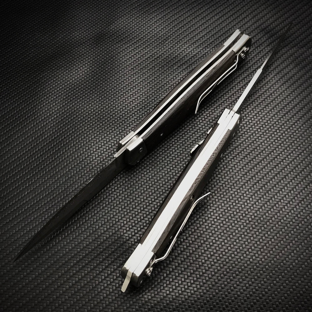 Its natural rosewood handle not only looks stunning but provides a comfortable, secure grip. Each handle has a unique grain, giving every knife its own character. A secure safety lock and built-in pocket clip make it a practical tool for daily carry or outdoor use.