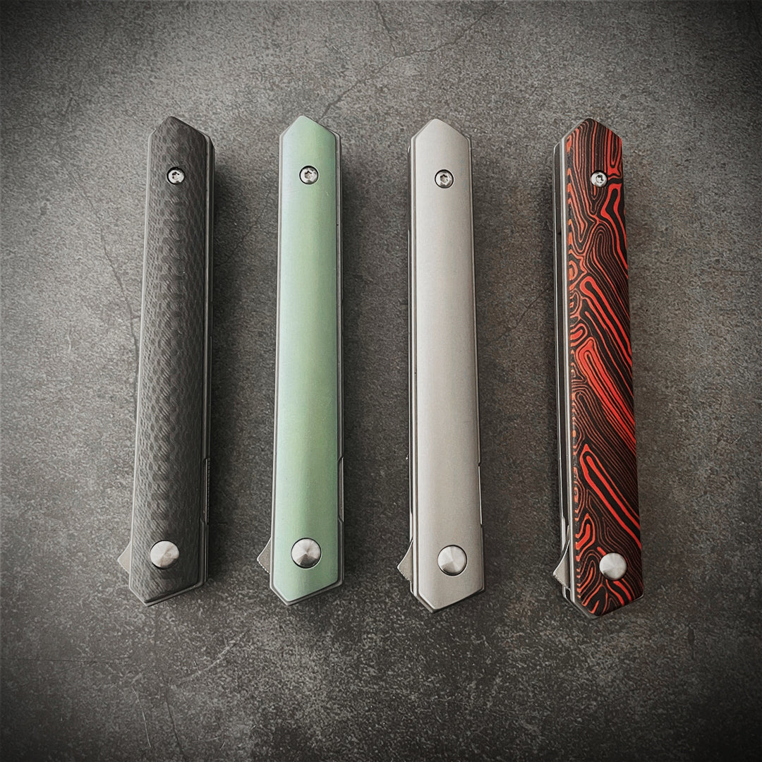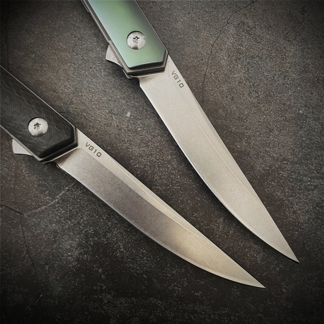 Introducing the Aurora Titanium knife, available in four captivating variations to suit your style. With a total length of 18.3cm and a blade length of 7.7cm, this versatile tool combines form and function seamlessly. The VG10 blade, treated with a vacuum process and stone washing, ensures exceptional sharpness and resilience. Crafted with front and back full titanium handles, this knife offers a lightweight yet robust grip. Choose from our selection of four stunning handle colors, each adding a touch of personalization to your outdoor adventures. Experience the Aurora Titanium, a true reflection of style, performance, and versatility.