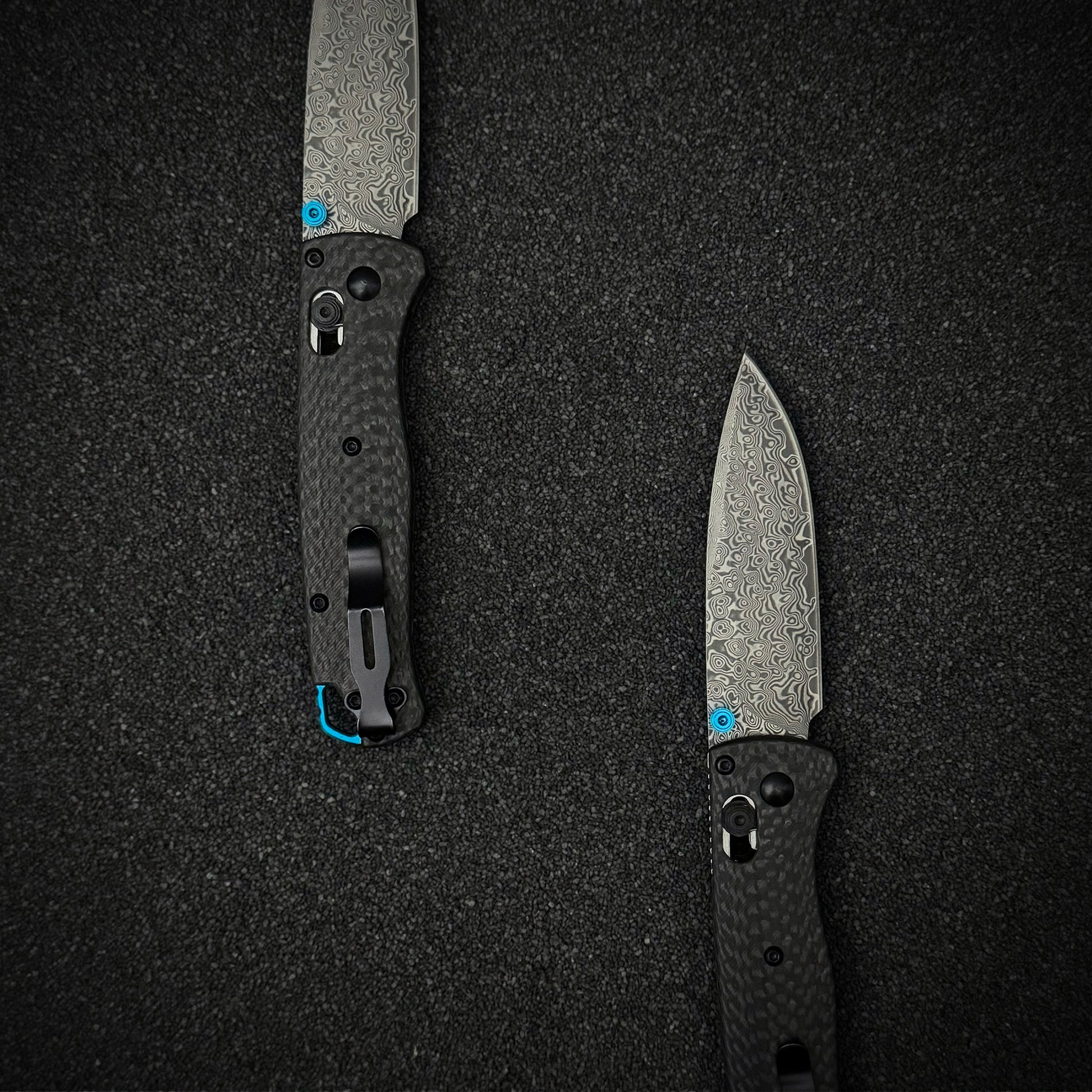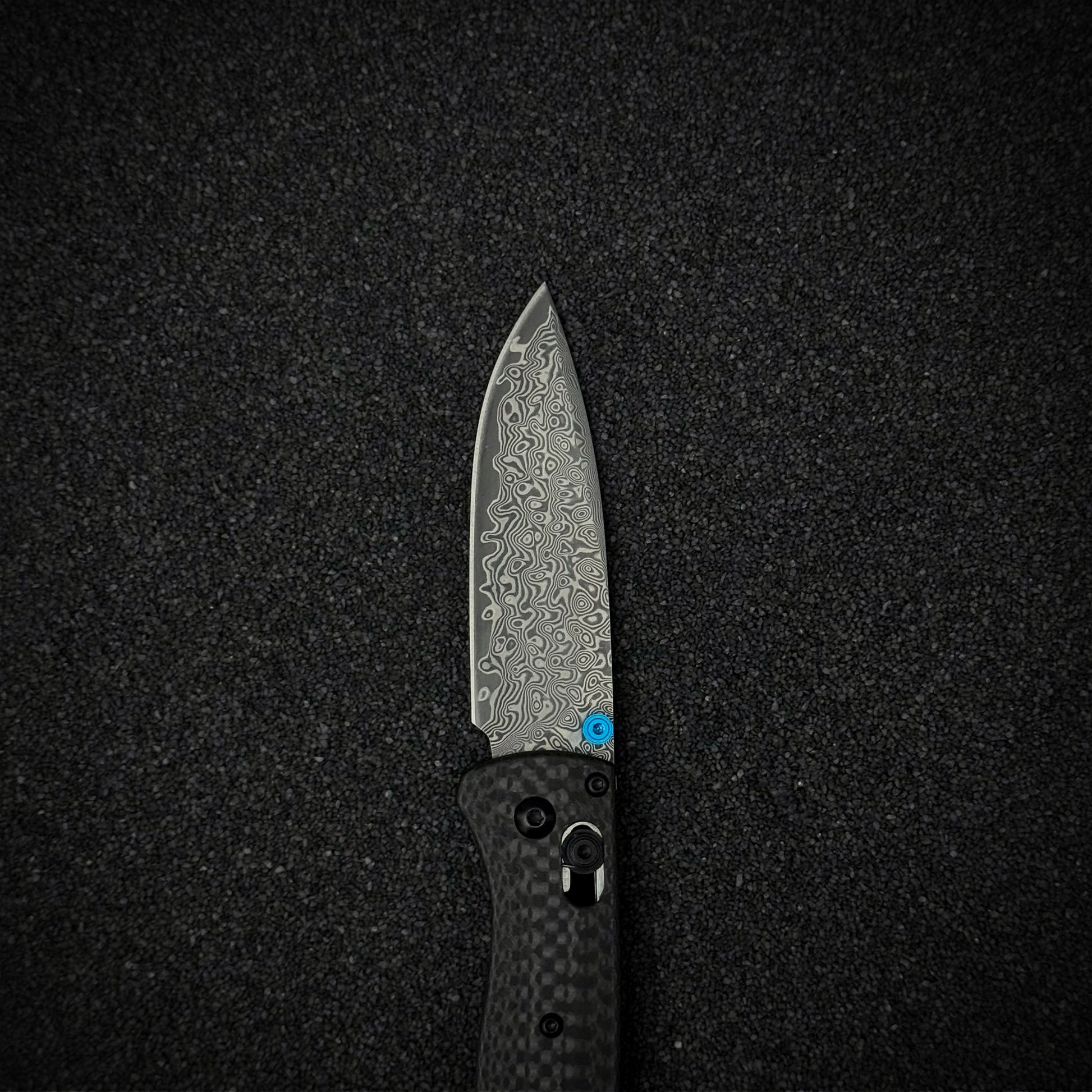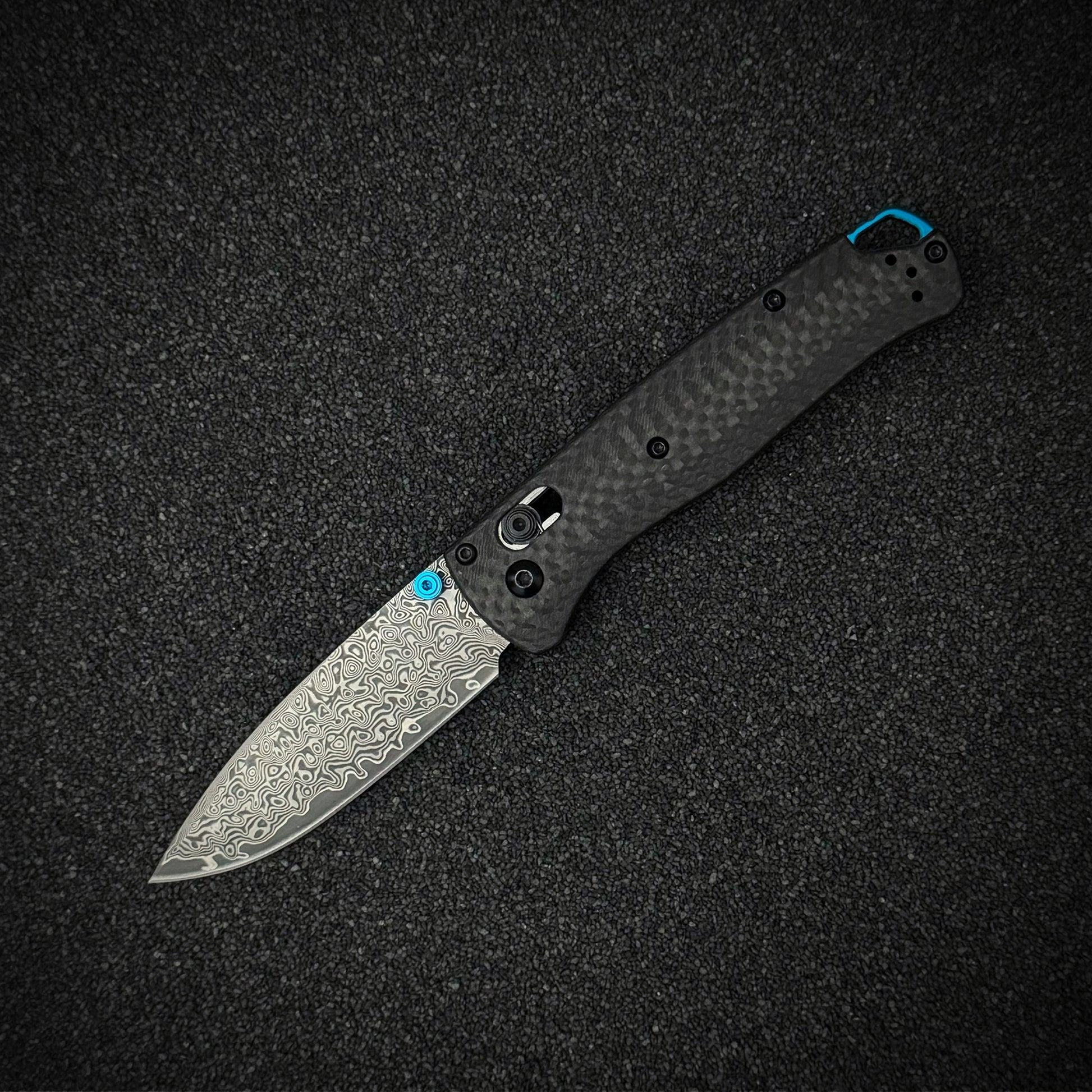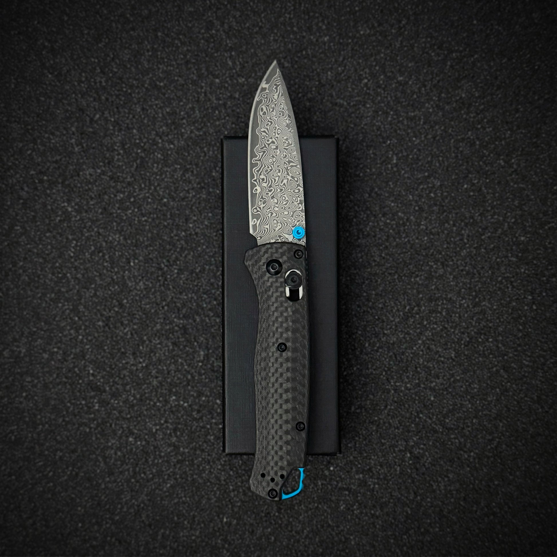 Introducing the Carbonite Azure knife, a remarkable fusion of style and function. With a total length of 18.8 cm, this folding knife features a beautifully crafted 8 cm Damascus steel blade that adds a touch of elegance to your everyday carry. The sleek carbon fiber handle provides a comfortable grip and features a subtle, yet striking, azure blue detail. Designed for versatility and precision, it's the perfect companion for both your daily tasks and outdoor adventures. Whether you're an avid collector or a practical user, the Carbonite Azure lnife is a must-have addition to your gear.