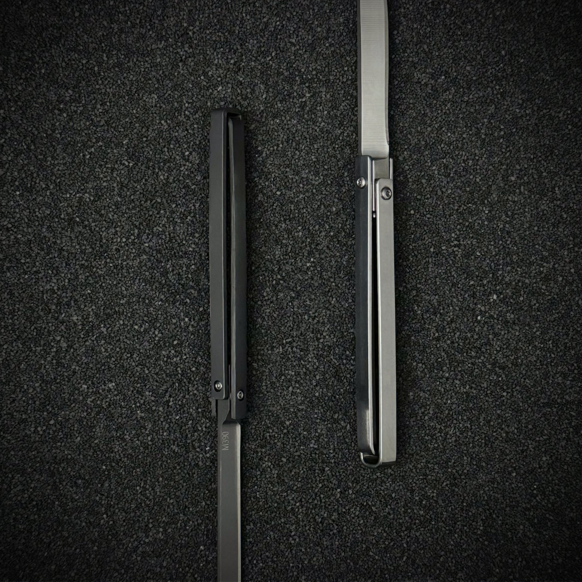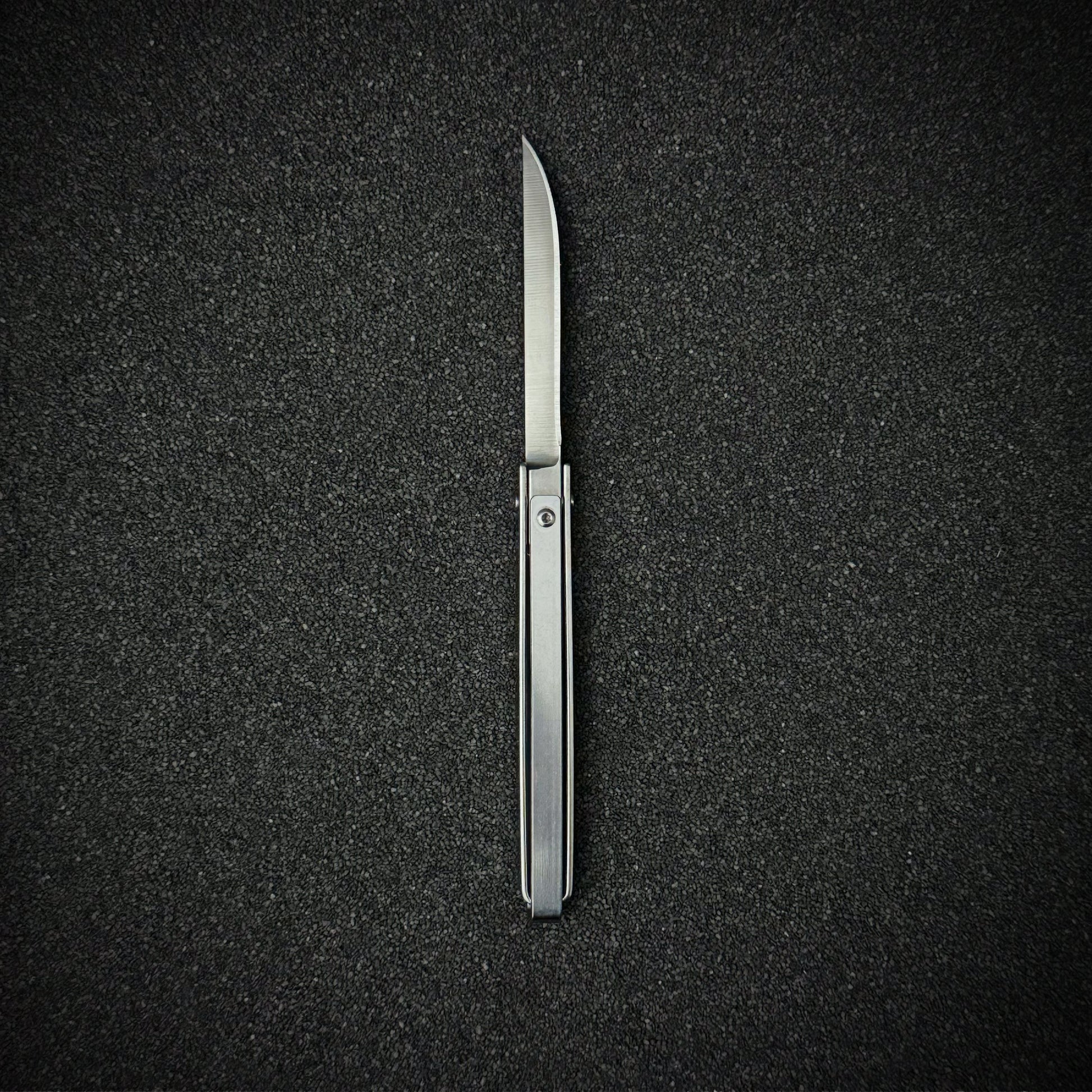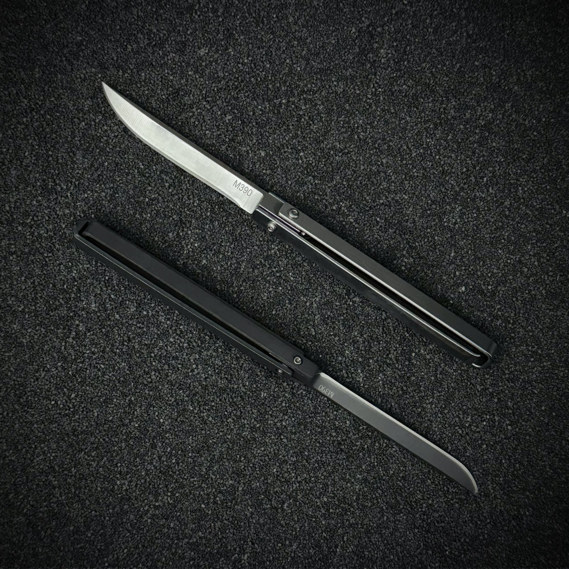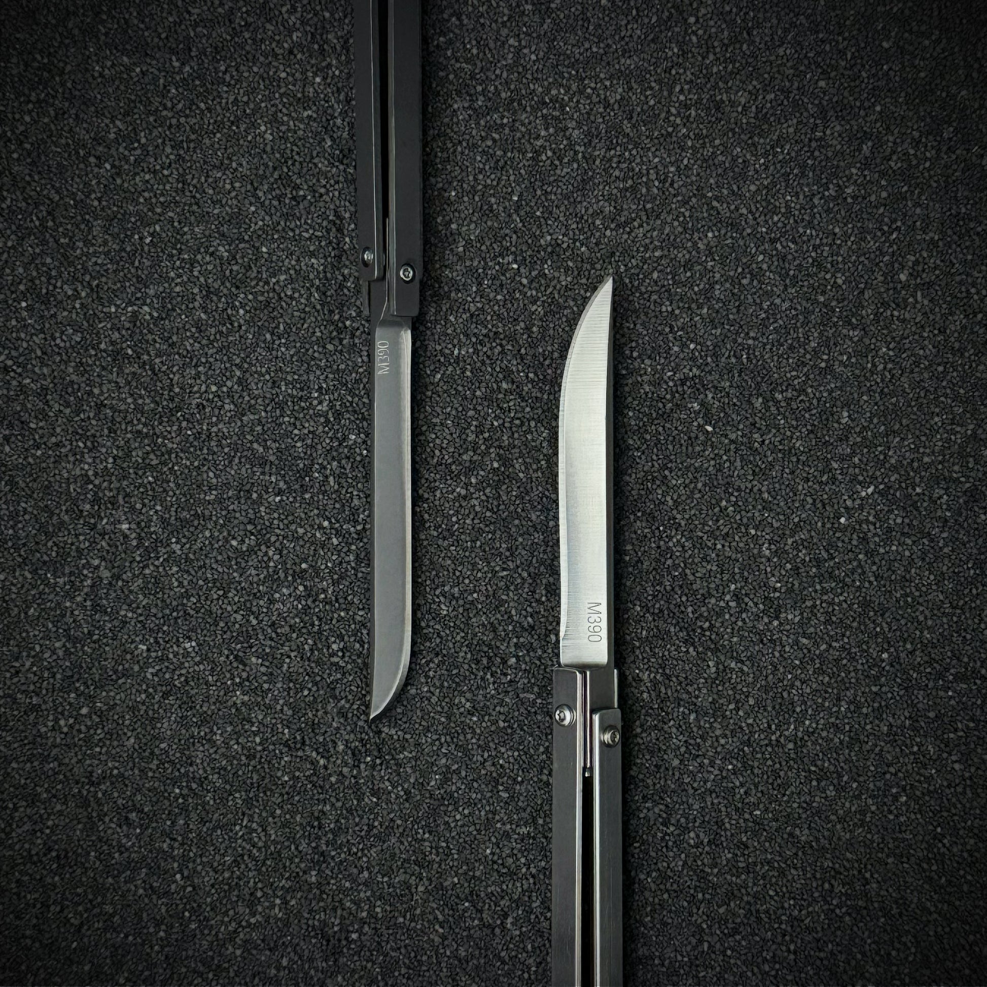 The Flip Shift folding knife features a unique design where the handle is made up of two parts that, when turned around, causes the blade to open on the other side. Made with a M390 blade material and a steel handle, this folding blade has a hardness of 59-60HRC. Its full length is 195mm, with a blade length of 86mm, blade width of 12mm, and blade thickness of 2mm. The Flip Shift folding knife is an innovative and versatile option for any knife enthusiast.