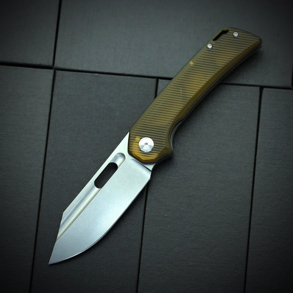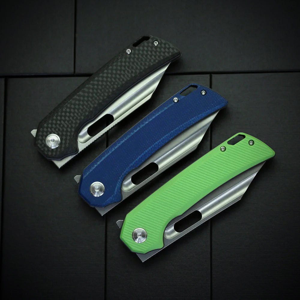 Introducing the Reload Titan knife – a fusion of style and functionality. With a unique and captivating 90mm blade design, this folding knife boasts a total length of 208mm. It comes in four variations, each distinguished by its handle color and material – choose between Carbon Fiber, Micarta, or Fluorescence G10 handles. All options offer a perfect blend of form and durability, with the 14C28N steel blade measuring 4mm in thickness and 32mm in width. The stone wash finish ensures superior cutting performance, making the Reload Titan a true companion for any adventure.